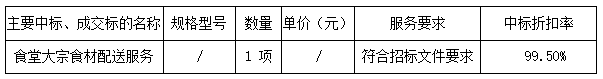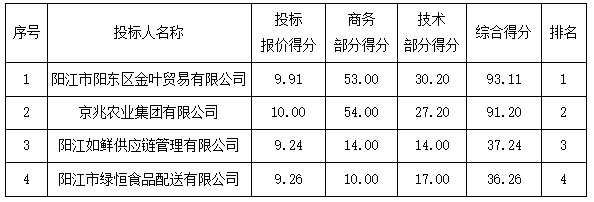 廣東業(yè)信采購(gòu)招標(biāo)有限公司受 陽(yáng)江市陽(yáng)東區(qū)華南師范大學(xué)附屬陽(yáng)東小學(xué) 的委托,于2024年12月23日就 陽(yáng)江市陽(yáng)東區(qū)華南師范大學(xué)附屬陽(yáng)東小學(xué)食堂大宗食材配送服務(wù)項(xiàng)目 (項(xiàng)目編號(hào):YXCG-20241130)采用公開招標(biāo)方式進(jìn)行采購(gòu)?,F(xiàn)就本次采購(gòu)的中標(biāo)結(jié)果公告如下:
