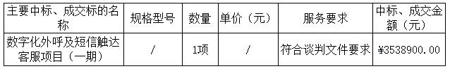 廣東業(yè)信招標有限公司受深圳市飛信文達科技有限責任公司的委托,于2023年11月27日就數(shù)字化外呼及短信觸達客服項目(一期)(項目編號:YXZB-20231115)進行談判采購,現(xiàn)將本次采購結果公告如下: