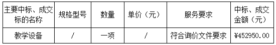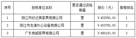 報價結(jié)果:最終詢價小組一致推薦 陽江市欣達美家具有限公司 為成交單位,成交金額為人民幣 452950.00 元(大寫金額: 肆拾伍萬貳仟玖佰伍拾元整 )。