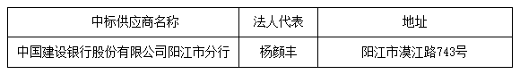 投標(biāo)結(jié)果:最終評(píng)標(biāo)委員會(huì)一致推薦 中國建設(shè)銀行股份有限公司陽江市分行 為中標(biāo)單位。