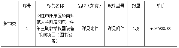 二、采購項目名稱:陽江市陽東區(qū)華南師范大學附屬陽東小學第三期教學儀器設(shè)備采購項目(圖書設(shè)備)