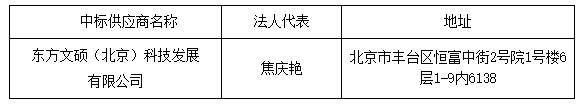 投標結(jié)果:最終評標委員會一致推薦 東方文碩(北京)科技發(fā)展有限公司 為中標單位,中標金額為人民幣 297900.00 元,(大寫金額: 貳拾玖萬柒仟玖佰元整 )。