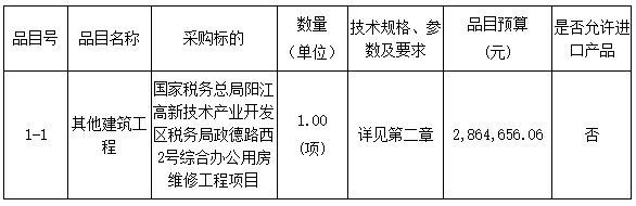 采購項目名稱:國家稅務總局陽江高新技術產(chǎn)業(yè)開發(fā)區(qū)稅務局政德路西2號綜合辦公用房維修工程項目