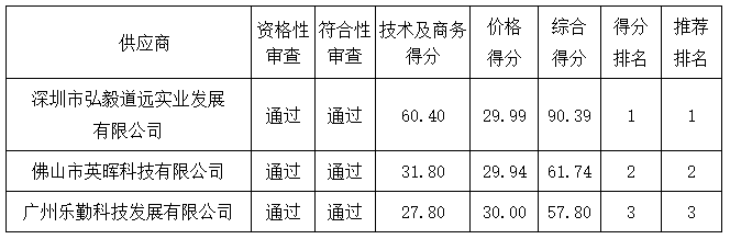 綜合評分法供應商排序表