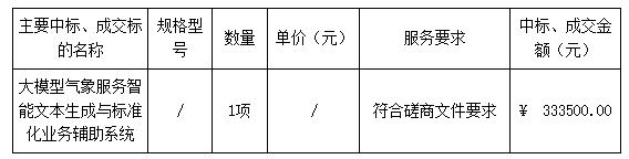 廣東業(yè)信采購招標(biāo)有限公司受 陽江市氣象臺 的委托,于2025年8月11日就 大模型氣象服務(wù)智能文本生成與標(biāo)準(zhǔn)化業(yè)務(wù)輔助系統(tǒng)項目(項目編號:YXCG-20250717)采用競爭性磋商方式進(jìn)行采購?,F(xiàn)就本次采購的成交結(jié)果公告如下:
