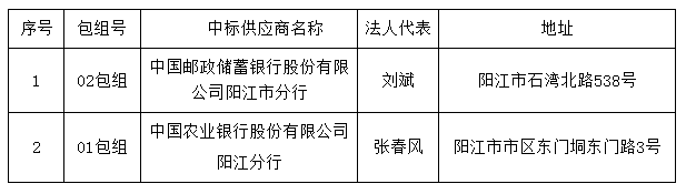 01包組: 中國農(nóng)業(yè)銀行股份有限公司陽江分行 ;
