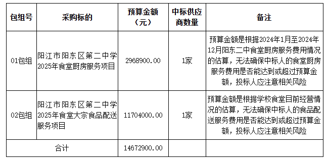 01包組:陽江市陽東區(qū)第二中學2025年食堂廚房服務項目