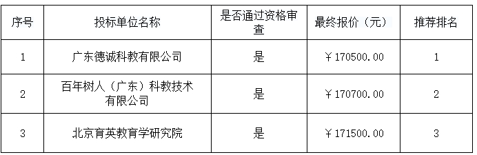 談判結(jié)果:最終談判小組一致推薦廣東德誠(chéng)科教有限公司為成交單位,成交金額為人民幣170500.00元(大寫(xiě)金額:壹拾柒萬(wàn)零伍佰元整)。