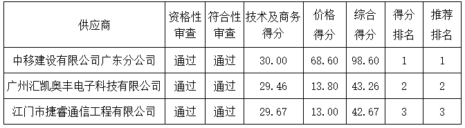 投標(biāo)結(jié)果:最終評標(biāo)委員會(huì)一致推薦 中移建設(shè)有限公司廣東分公司 為中標(biāo)單位,中標(biāo)金額為人民幣 252422.00 元,(大寫金額: 貳拾伍萬貳仟肆佰貳拾貳元整 )。