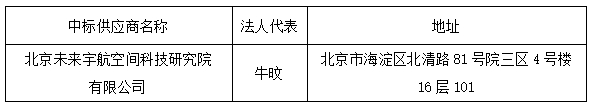 投標結(jié)果:最終評標委員會一致推薦 北京未來宇航空間科技研究院有限公司 為預中標單位,中標金額為人民幣 480000.00 元,(大寫金額: 肆拾捌萬元整 ) 。