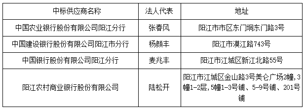(3)中國(guó)銀行股份有限公司陽(yáng)江分行;