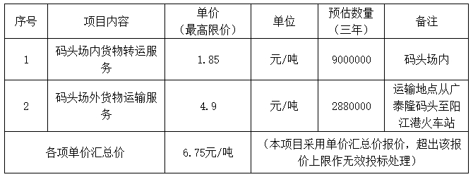 陽江市陽江港廣泰隆碼頭有限公司碼頭場(chǎng)內(nèi)貨物轉(zhuǎn)運(yùn)和場(chǎng)外運(yùn)輸服務(wù)采購項(xiàng)目