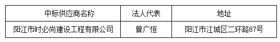 投標(biāo)結(jié)果:最終評(píng)標(biāo)委員會(huì)一致推薦 陽江市時(shí)必尚建設(shè)工程有限公司 為中標(biāo)單位,中標(biāo)金額為人民幣 333088.00 元,(大寫金額: 叁拾叁萬叁仟零捌拾捌元整 )。