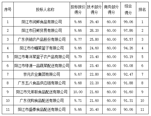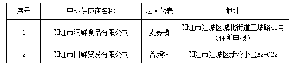 1.陽(yáng)江市潤(rùn)鮮食品有限公司 中標(biāo)折扣率為 95.00% 。