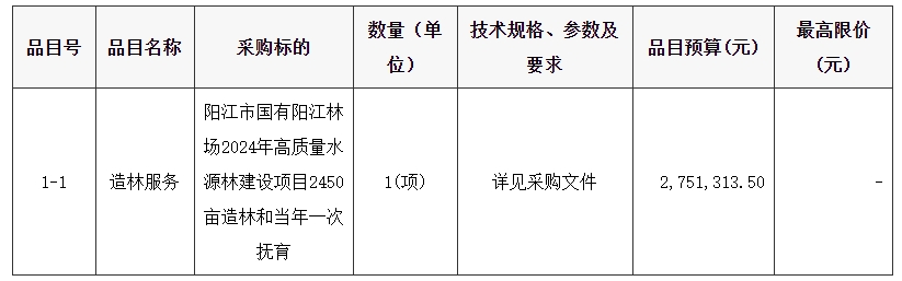 合同包1(陽(yáng)江市國(guó)有陽(yáng)江林場(chǎng)2024年高質(zhì)量水源林建設(shè)項(xiàng)目):
