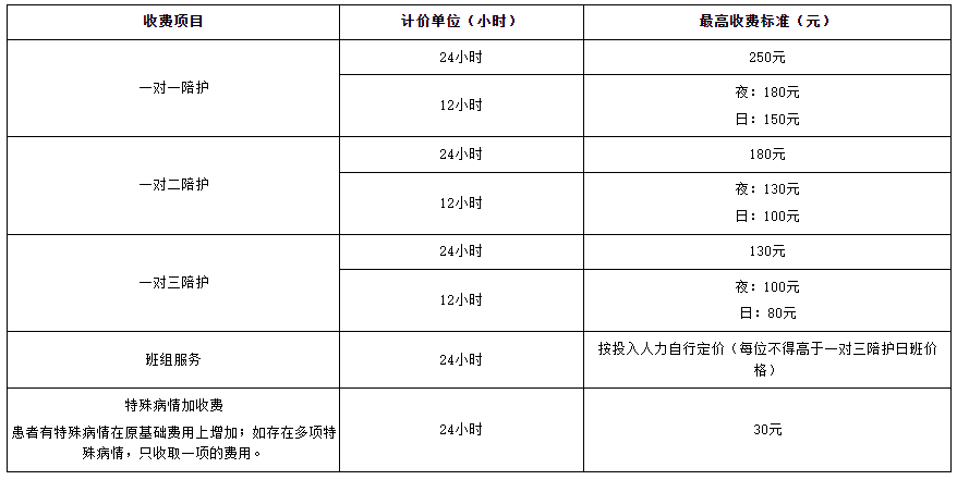 2)陪護(hù)服務(wù)費(fèi)報(bào)價(jià):