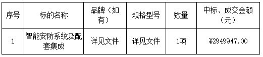 廣東業(yè)信招標(biāo)有限公司受 廣東晉峰建設(shè)工程有限公司 的委托,于2025年6月25日就 廣東晉峰建設(shè)工程有限公司智能安防系統(tǒng)及配套集成項(xiàng)目 (項(xiàng)目編號:YXZB-20250617)采用公開比選方式進(jìn)行采購?,F(xiàn)就本次采購的成交結(jié)果公告如下:
