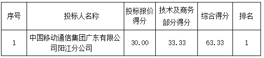 成交供應(yīng)商名稱:中國移動通信集團(tuán)廣東有限公司陽江分公司