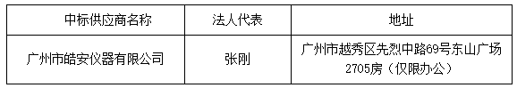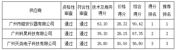 投標(biāo)結(jié)果:最終評(píng)標(biāo)委員會(huì)一致推薦 廣州市皓安儀器有限公司 為中標(biāo)單位,中標(biāo)金額為人民幣 839800.00 元,(大寫(xiě)金額: 捌拾叁萬(wàn)玖仟捌佰元整 )。
