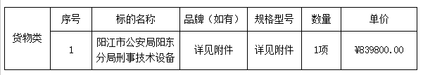 二、采購(gòu)項(xiàng)目名稱(chēng):陽(yáng)江市公安局陽(yáng)東分局刑事技術(shù)設(shè)備采購(gòu)項(xiàng)目