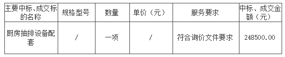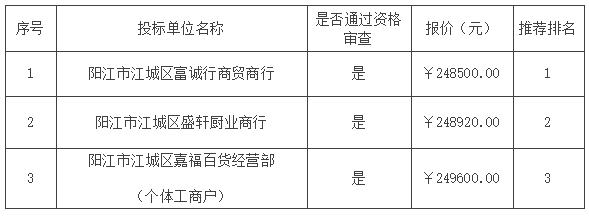 報(bào)價(jià)結(jié)果:最終詢價(jià)小組一致推薦 陽江市江城區(qū)富誠(chéng)行商貿(mào)商行 為成交單位,成交金額為人民幣 248500.00 元(大寫金額: 貳拾肆萬捌仟伍佰元整 )。