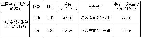 成交金額:初中為人民幣2.80元/科/生,小學為人民幣2.26元/科/生