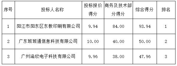 磋商結果:最終磋商小組一致推薦 陽江市陽東區(qū)東教印刷有限公司 為成交單位,成交金額初中為人民幣2.80元/科/生,小學為人民幣2.26元/科/生。